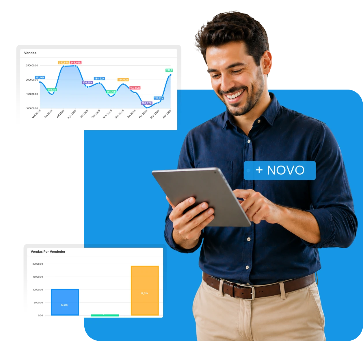 Gestão de representantes, metas e comissões, aplicativo para vendas externas e muito mais.